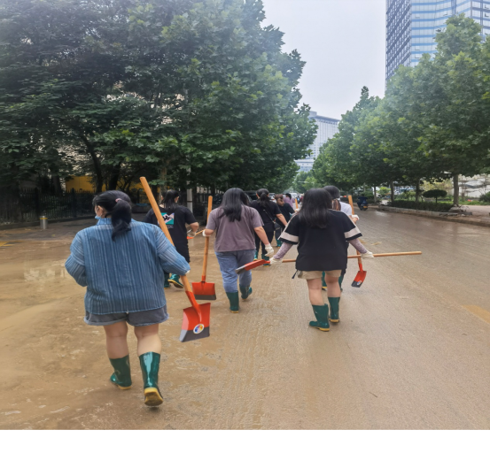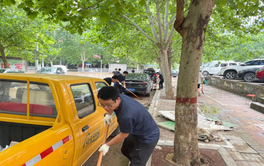 7月22日,市內大雨雖過,洪水漸消,但抗災救災形勢依然嚴峻,為了幫助人民群眾迅速恢復生產生活,中共河南省工程咨詢中心黨委對中心青年、尤其是青年黨員發出了倡議書,第十黨支部收到倡議書后,迅速與幫扶社區取得聯系,在了解到社區急需人員、工具清理道路淤泥后,支部黨員及豫信公司員工紛紛“請戰”,踴躍報名參加防汛志愿服務活動,并于23日上午9點集合31人,攜帶公司自購清於工具,積極投入到災后道路清理工作中。