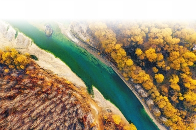 冬日的黃河孟津段,水碧綠,樹挺拔,在陽光照射下,盡顯黃河生態廊道建設之美。 曾憲平 攝