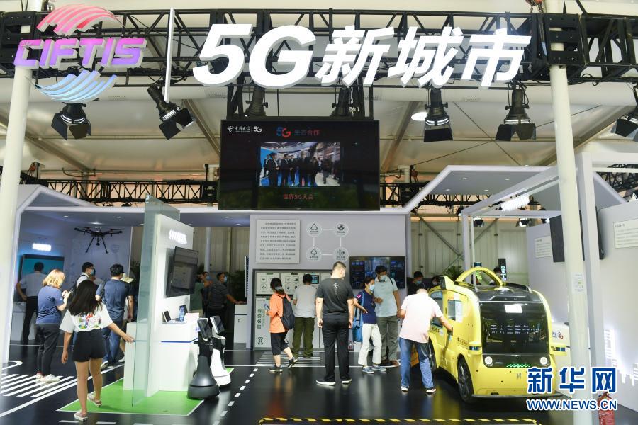 9 月 7 日,觀眾在 2020 年中國國際服務貿易交易會 5G 通信服務專題展區參觀。 2020 年中國國際服務貿易交易會 9 月 4 日至 9 日在北京舉行。新華社記者 魯鵬 攝