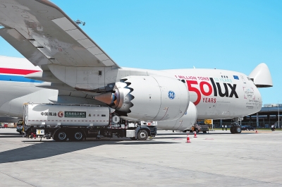 6月15日凌晨,一架身著“Zheng-zhou-LuxembourgAIRSILKROAD”嶄新涂裝的B747-8F全貨機,從鄭州機場北貨區(qū)停機坪起飛,滿載貨物直飛盧森堡芬德爾機場。這架全貨機加注的是可持續(xù)航空燃料(SAF),作為鄭州機場第一個“SAF航班”,盧森堡貨航也成為首家在中國大陸加注SAF產(chǎn)品的外國航空公司。