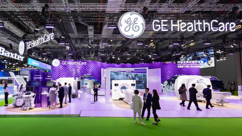 11月8日在第六屆進博會醫療器械及醫藥保健展區拍攝的GE醫療展位。