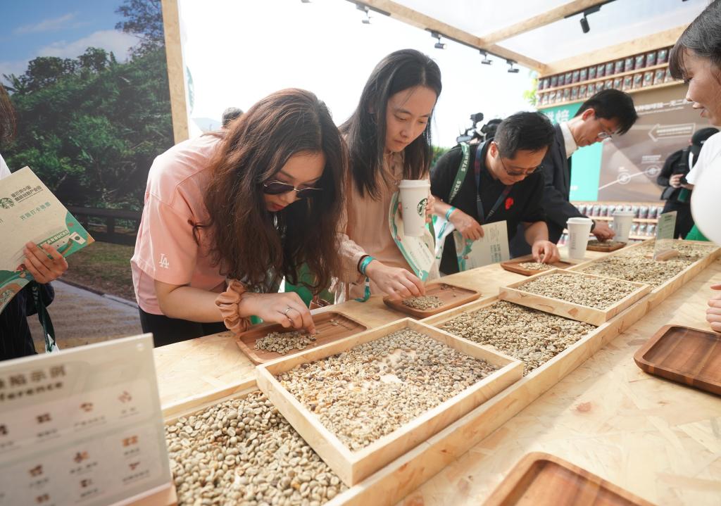 9月19日,在星巴克中國咖啡創新產業園開園儀式現場,來賓在體驗挑揀咖啡生豆。當日,星巴克中國咖啡創新產業園在江蘇昆山落成投產。