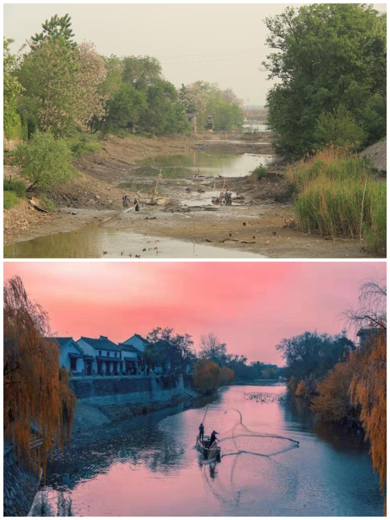 江蘇省揚州市江都區(qū)明清運河故道整治前后。(上圖:2012年;下圖:2020年)(孫友定 攝)