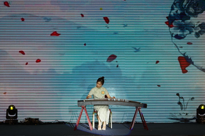 5月20日,第22屆“漢語橋”世界大學生中文比賽越南北部及中部賽區決賽中,參賽大學生表演古箏和太極拳。