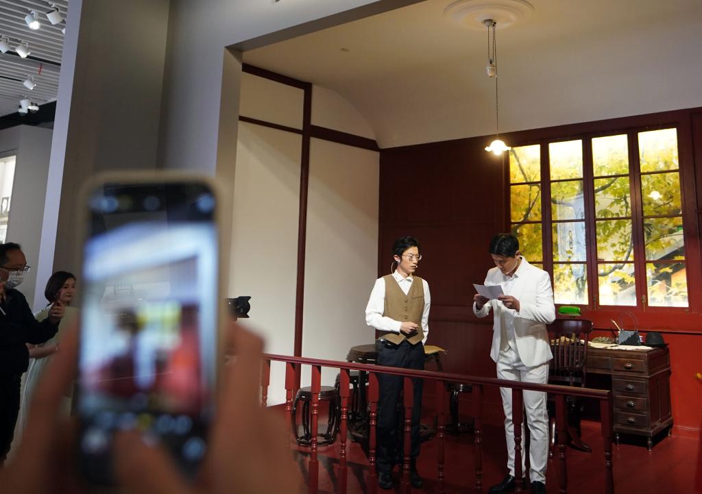 ??2023年5月18日晚,中共一大紀念館原創的情景黨課《又見新青年》在展廳內實景演出。自2021年中國共產黨成立100周年之際全新開放以來,中共一大紀念館對紅色文化的創新傳播正不斷“圈粉”年輕人。新華社記者 劉穎 攝