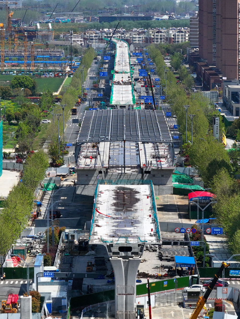 ??南京至馬鞍山市域(郊)鐵路全長約54.23公里,共設站16座。項目建成后,兩市中心城區僅需30分鐘即可互通互達。這是2024年4月9日在南京拍攝的該鐵路工程項目建設現場(無人機照片)。