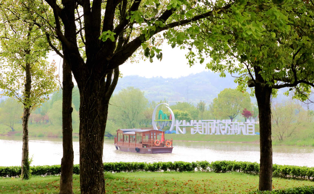 ??2024年4月10日,游船在浙江省湖州市長興縣太湖圖影濕地的航道上航行。