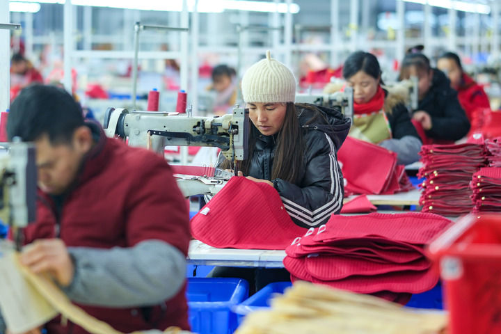 ??2024年1月18日,社區居民在紅安社區的鄉村振興就業車間工作。紅安社區是由易地搬遷安置區單獨成立的新社區,位于湖南省湘西土家族苗族自治州鳳凰縣禾庫鎮。新華社記者 張鋮 攝