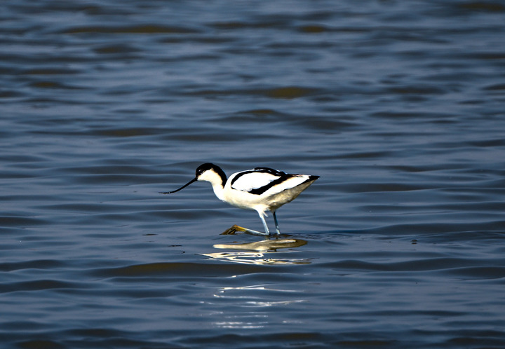一只反嘴鷸在天津七里海濕地自然保護區內休憩覓食。新華社記者 孫凡越 攝