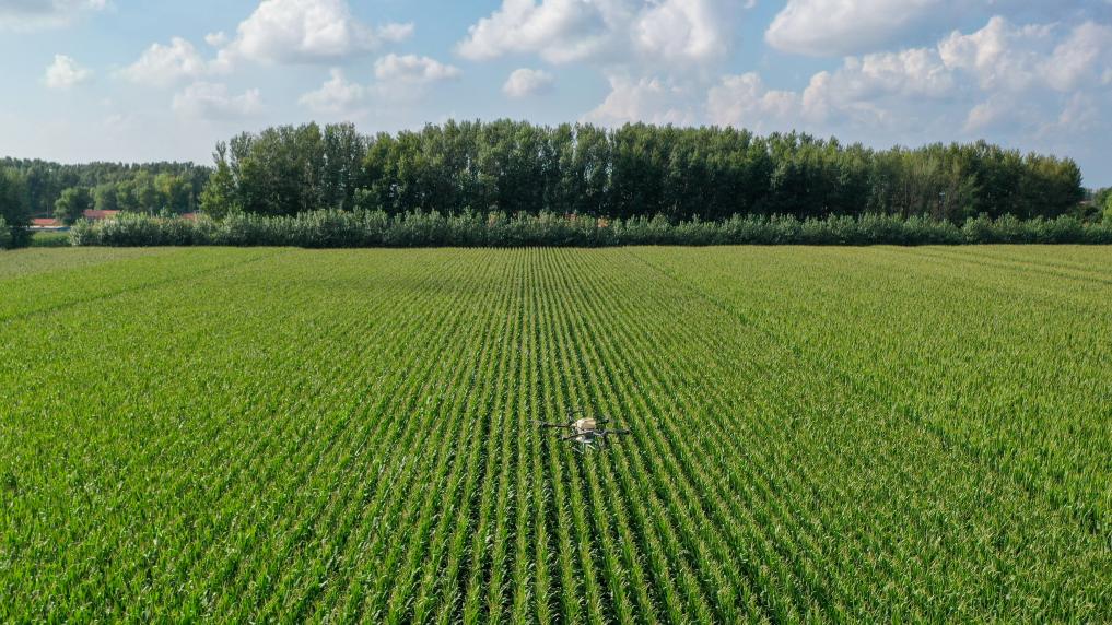??2024年8月8日,在吉林省梨樹縣孤家子鎮,無人機為作物施肥(無人機照片)。新華社記者 張楠 攝