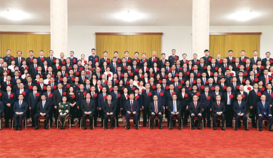 2020年9月8日,全國抗擊新冠肺炎疫情表彰大會在北京人民大會堂隆重舉行。會前,習近平等黨和國家領導人會見國家勛章和國家榮譽稱號獲得者,全國抗擊新冠肺炎疫情先進個人、先進集體代表等,并同大家合影留念。 新華社記者 黃敬文/攝